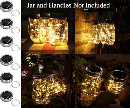 Forthcan Solar Mason Jar Lights 6 Pack 20 Led String Fairy Firefly Lights Lids Insert For Regular Mouth Jars Mason Jar Patio Lawn Garden Decor 6